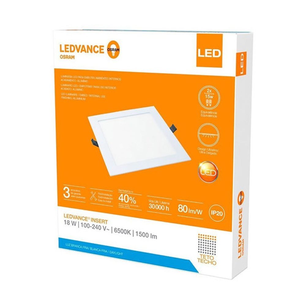Painel Paflon de Embutir Osram Ledvance 18w/865 6500K Quadrado